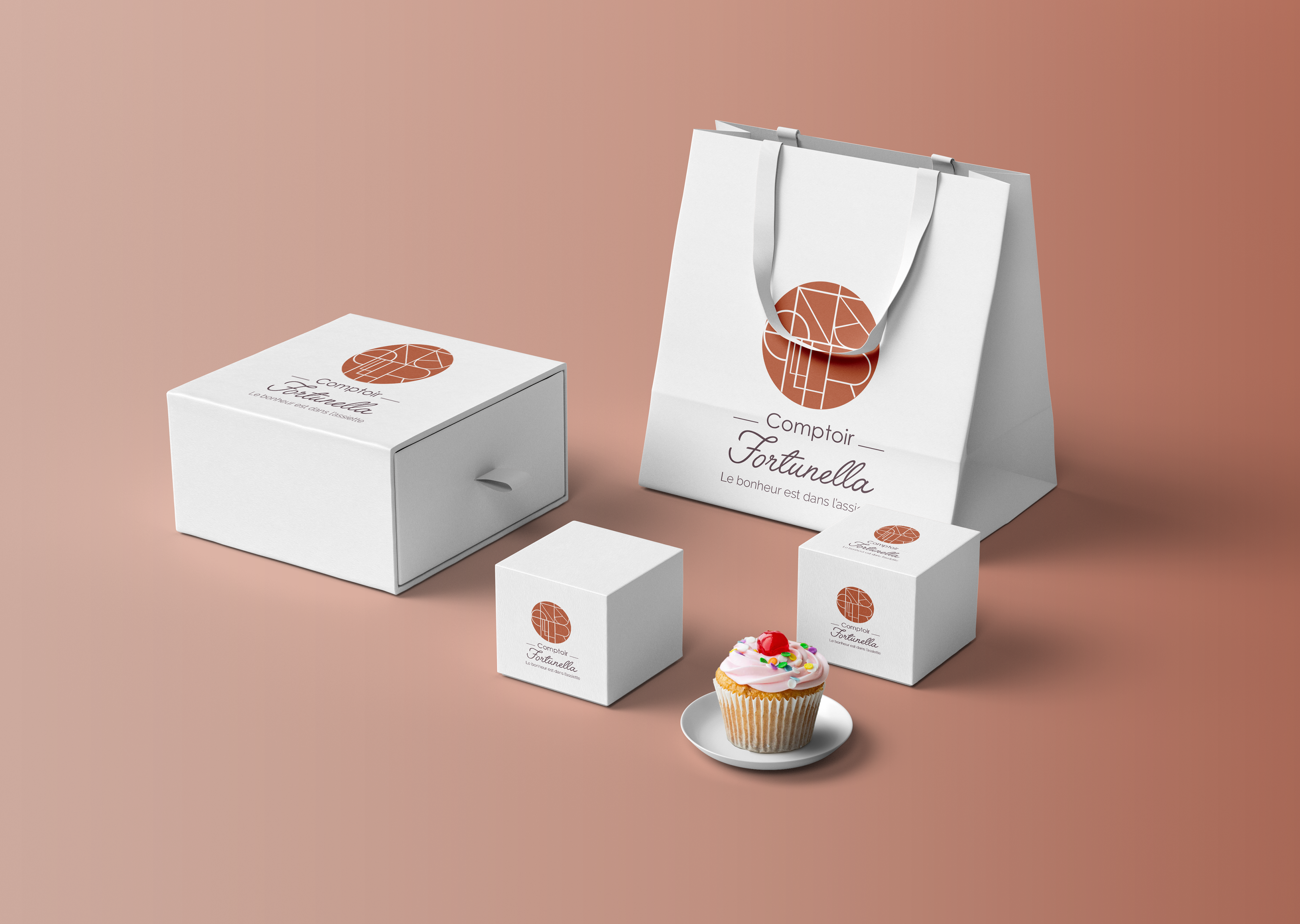 Le comptoir Fortunella est situé à Saint Didier au Mont d'Or. Lydia, sa propriétaire souhaitait que une identité visuelle pour son établissement qui reflète tout l'amour qu'elle porte à son pays et à sa gastronomie : l'Italie.